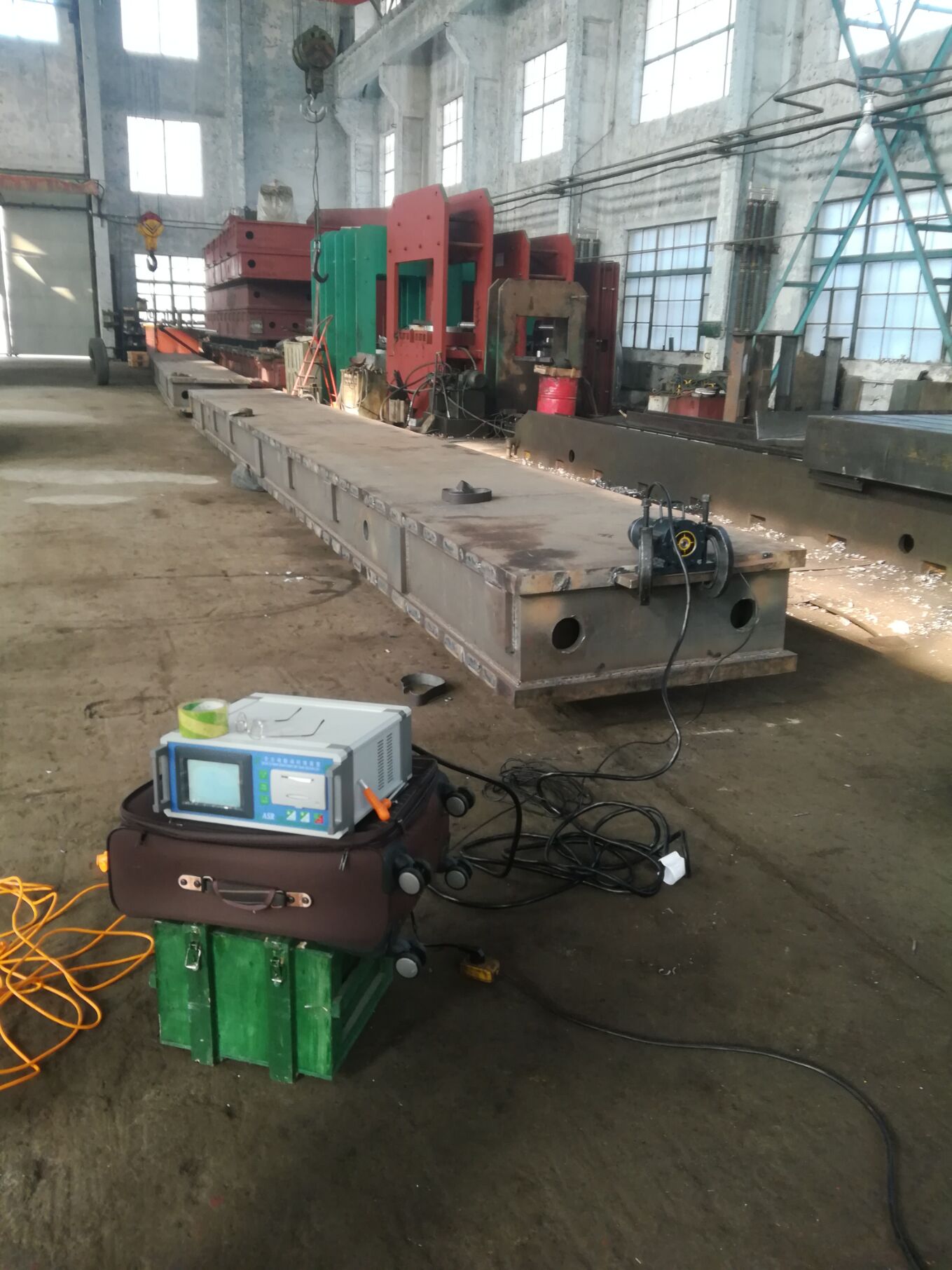 振动时效 一、振动频率的选择 振动时效是在激振器所产生的周期性外力激振力的作用下在某一频率使金属结构件共振,产生足够的动应力来致使内部残余应力消除或匀化来达到时效目的。每一种金属结构件均有几种不同振型的共振频率,与结构件本身的形状、重量、材质和结构钢性等因素有关。振动时效设备在一定的频率范围内通过扫频可检测出不同振型的数个共振频率(即出现振动zui大的峰值频率),在正常情况下会自动选择zui佳的共振频率为主振频率(其振型称为主振振型),为补充主振振型的不足,在5%的情况下还需选择与主振型不同的另一次低共振频率为附振频率(其振型称为附振振型)。振动时效仪对主振频率和附振频率的选择是由软件完成的,其选择准确性高并且避免了人为因素造成的加工效果不佳等。对于某些特殊结构件,可能其共振频率超出了设备的频率范围,此时可选择大激振力的设备采用“分频法”——即在一阶共振频率的对应1/3和1/5等频率上对工件进行时效处理。 二、振动幅值的选择 时效处理的振动一般选择在亚共振区,亚共振区即共振峰值的前沿对应zui大振动幅值的1/3-2/3处。选择亚共振区进行时效处理,不会对结构件造成任何疲劳损伤,相反还会提高工件的疲劳寿命。振动时效设备通过自动分析软件自动选择振幅,在时效加工过程中自动检测振幅的变化,实现自动频率调节控制振幅。 三、激振力的确定 激振力的大小是通过工件承受动应力值大小来衡量的,是振动时效工艺的一个重要参数,直接影响振动时效的效果,通过改变偏心轮的偏心距即可调节激振力大小(即施加于结构件的动应力的大小)。某些设备用加速度值间接反映动应力值的大小,一般来说动应力大则相应的加速度大,对于不同的结构件在时效处理时对动应力的要求不一样,主要结构件的激振力可参照其主振频率和附振频率的加速度峰值来进行。 |